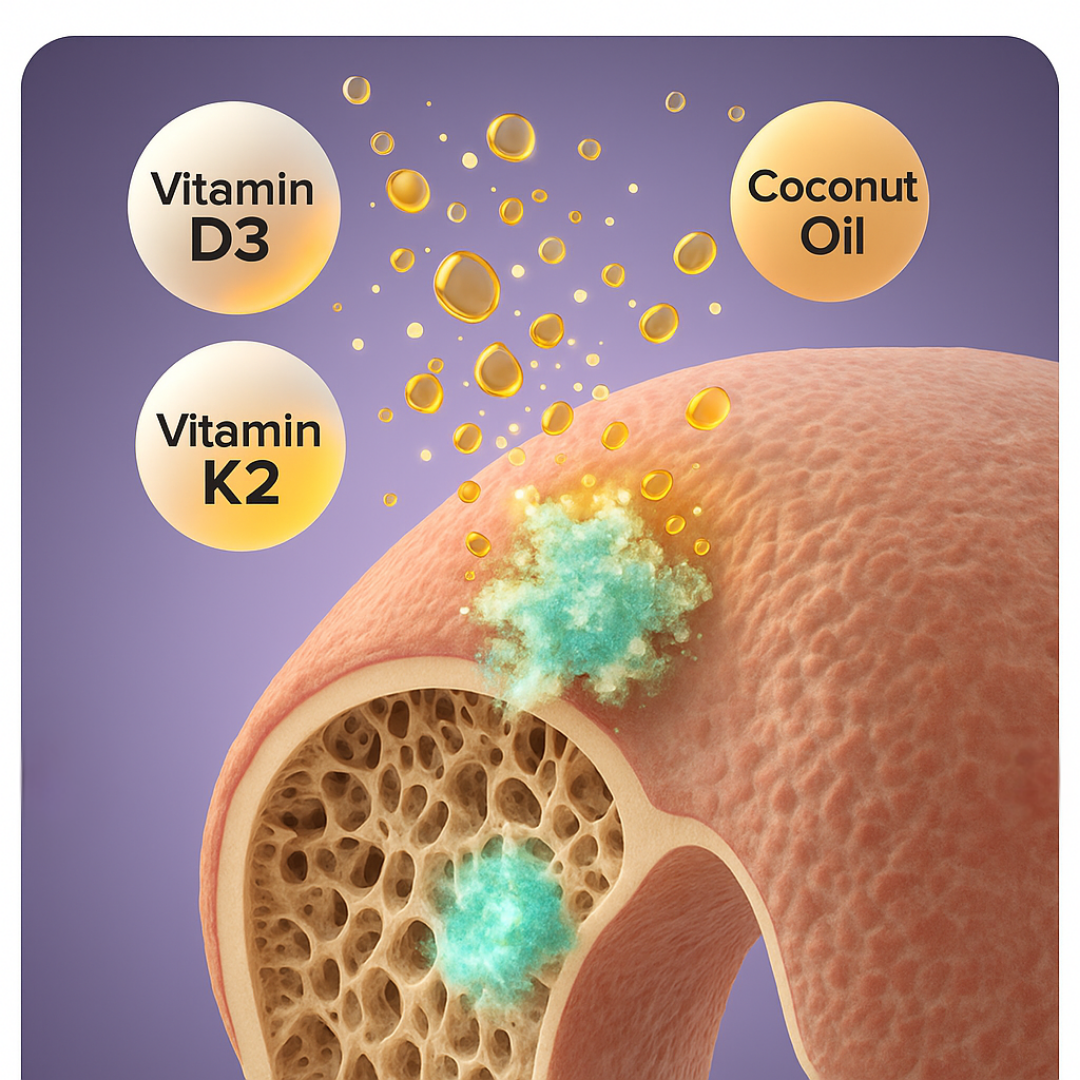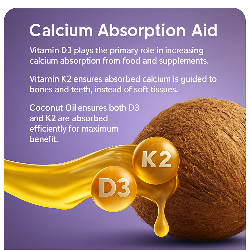 Vitamin D3 and K2 are fat-soluble. Coconut oil helps your body absorb them better than dry capsules or tablets.